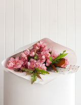 All bouquets are packed with water to keep flowers fresh. We wrap our bouquets in white paper finished off with our signature dandelion piece. Alternatively, add on a signature flower box to your order.