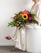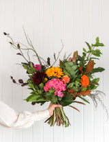 The bouquet shown is of large size, with smaller and larger sizes available for order. Please note, flowers will vary season to season from the photo shown though we always aim to match the colour palette. If you would like to specify colours please add it to the order notes and we will try our best, subject to availability.