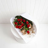Perfect for romantic occasions, the Romeo is a bouquet of premium red roses and greenery, complimented by a touch of rose gold. Choose from a range of sizes available.